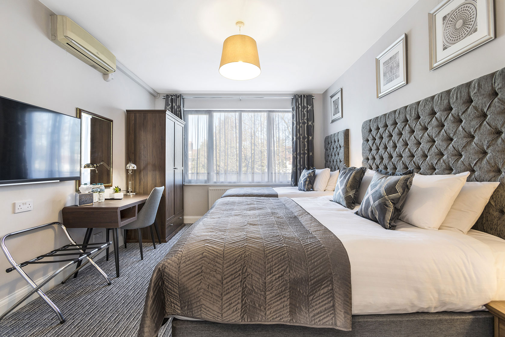 Each room has air conditioning, central heating, a large flat screen TV, fridge, tea and coffee making facilities, hair dryer and free wi-fi.